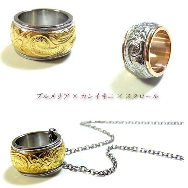 ハワイアンジュエリー リング ネックレス ペンダント メンズ レディース 金属アレルギー対応 プルメリア スクロール サージカル ステンレス PVD ゴールド ピンクゴールド gps8790