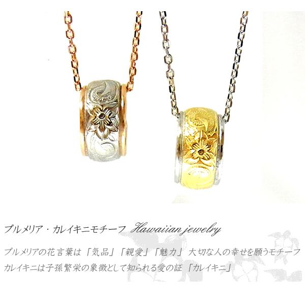 ハワイアンジュエリー ネックレス ペンダント プリメリア スクロール カレイキニ メンズ レディース サージカルステンレス ステンレス ノンアレルギー 金属アレルギー対応 リングネックレス プレゼント 記念日 誕生日 贈り物 イエローゴールド ピンクゴールド