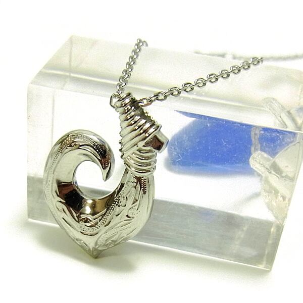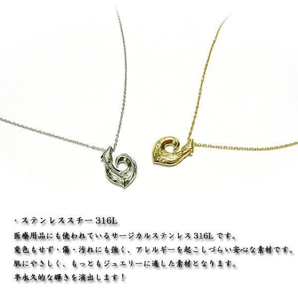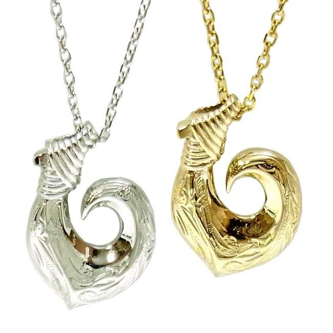 ハワイアンジュエリー ネックレス ペンダント フィッシュフック プリメリア スクロール カレイキニ メンズ レディース サージカルステンレス ステンレス ノンアレルギー 金属アレルギー対応 プレゼント 記念日 誕生日 贈り物 スチールシルバー イエローゴールド