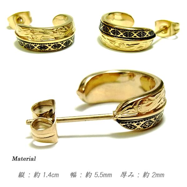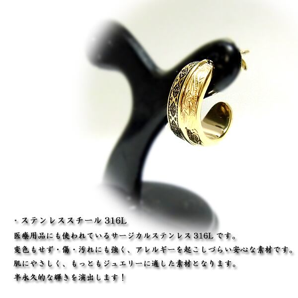 【片耳用】 ハワイアンジュエリー ピアス オルテガ 金属アレルギー対応 メンズ レディース プルメリア カレイキニ スクロール ゴールド サージカル ステンレス PVD インスタ ges8169