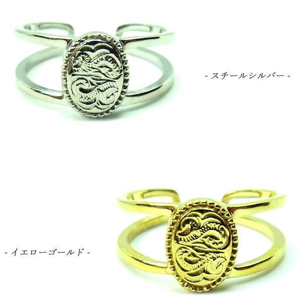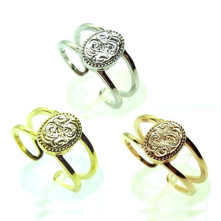 ハワイアンジュエリー リング 指輪 リバーシブル フリーサイズ K14 金属アレルギー対応 ハワジュ メンズ レディース カレイキニ スクロール サージカル ステンレス PVD grs8612