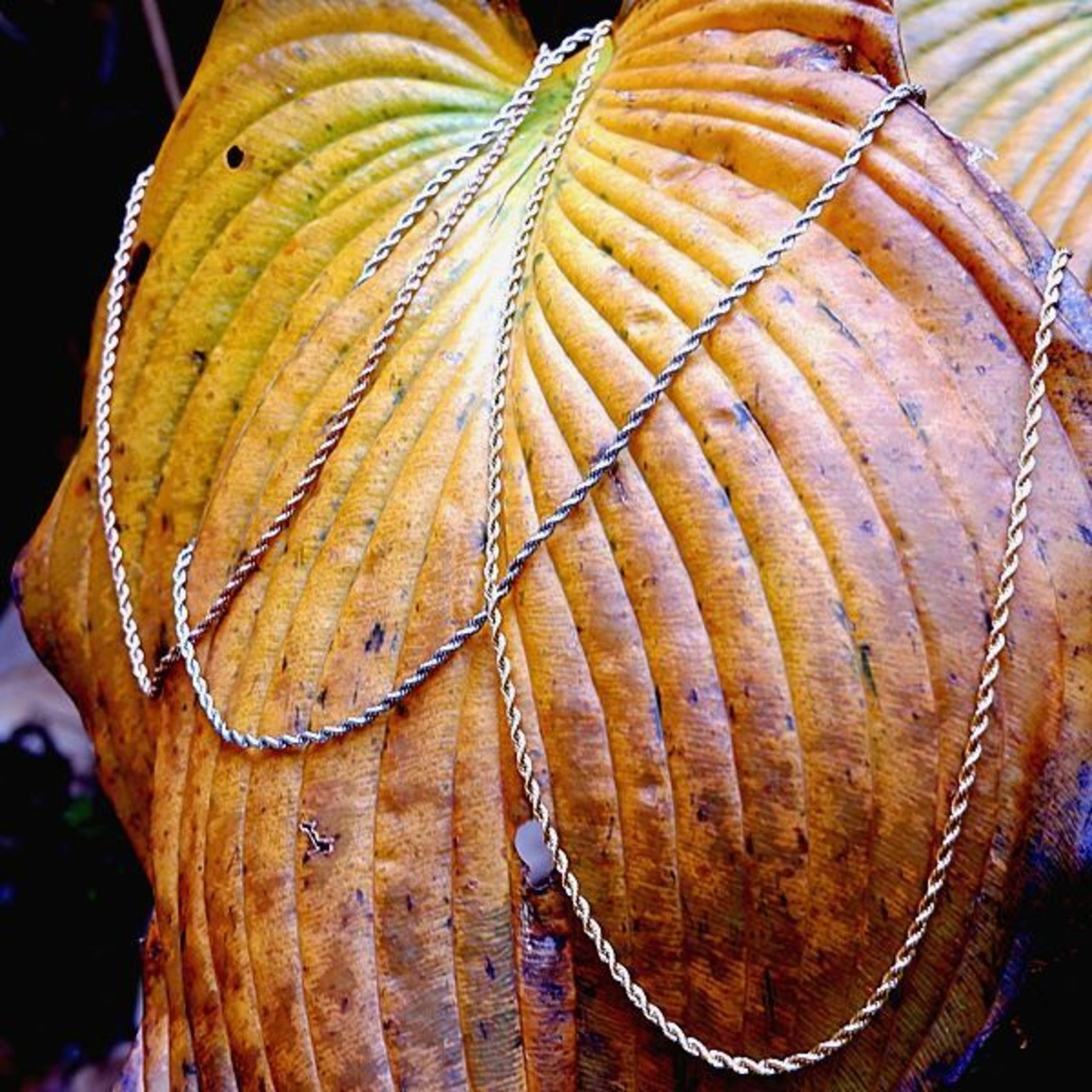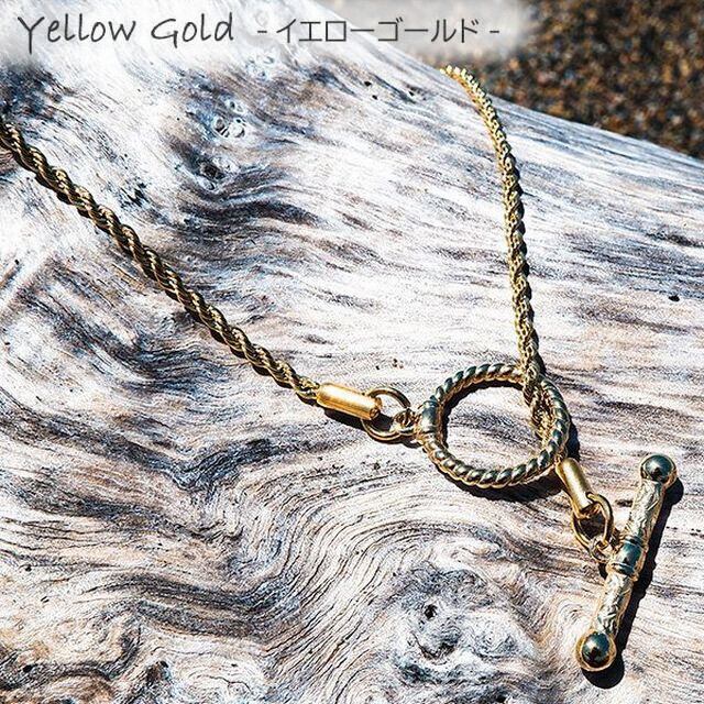 ロープのように編み込まれた形状と表面のカット加工がキラキラと輝き、首に沿いながら着け心地を重視してます。