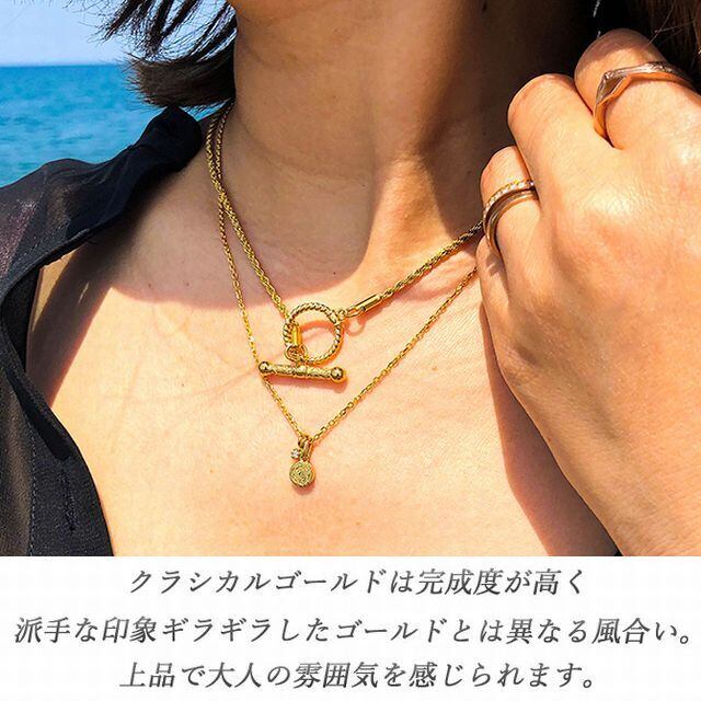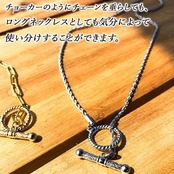チョーカーのようにチェーンを垂らしても、ロングネックレスとしても気分によって使い分けすることができます。