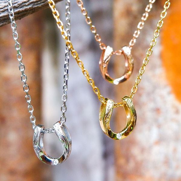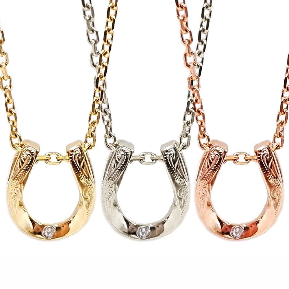 ハワイアンジュエリー ハワイアンアクセサリー ネックレス ホースシュー 馬蹄 スクロール 波ペンダント メンズ レディース 名入れ 刻印 メンズ レディース 金属アレルギー対応 サージカルステンレス ステンレススチール316L PVD アクセサリー スチールシルバー イエローゴールド ピンクゴールド