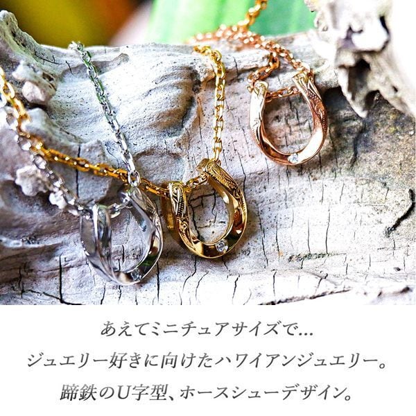 ハワイアンジュエリー ネックレス ホースシュー 金属アレルギー対応 馬蹄 スクロール 波 メンズ レディース サージカルステンレス シルバー ゴールド ピンクゴールド インスタ gps81320