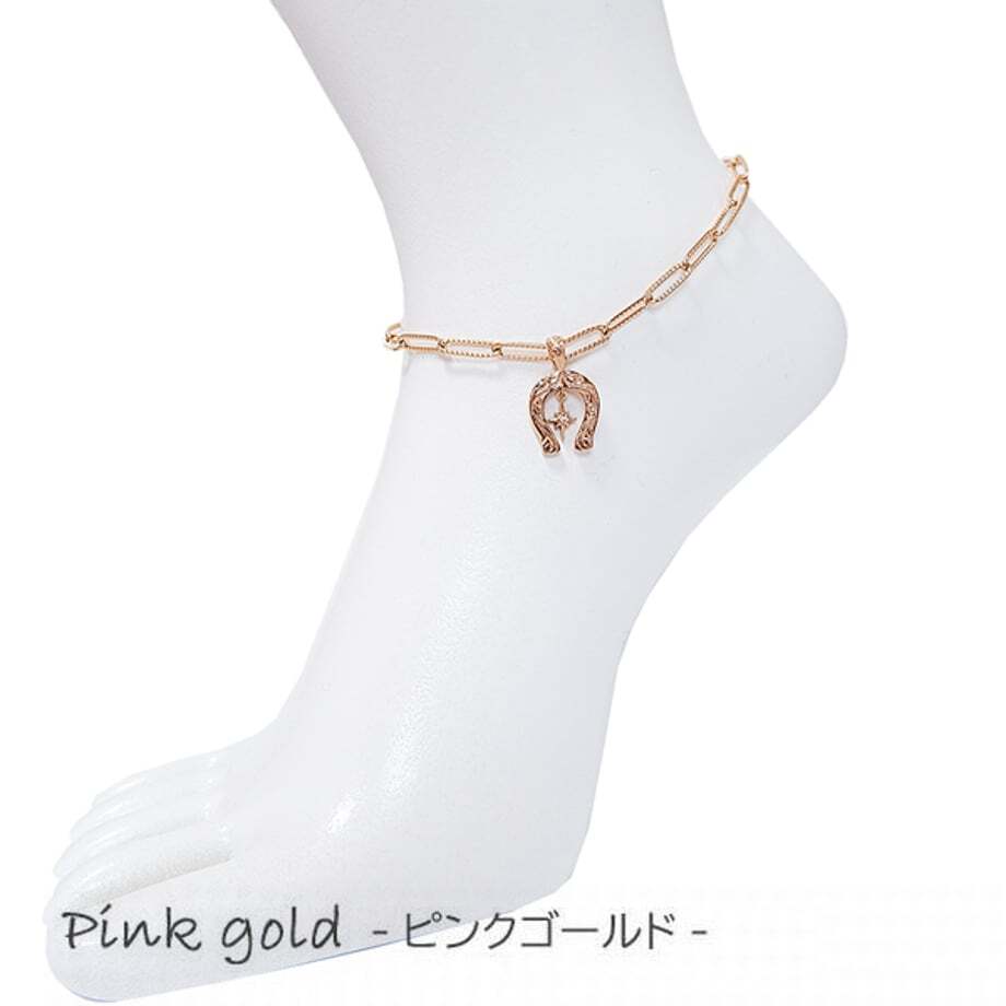 ハワイアンジュエリー ハワジュ アンクレット 金属アレルギー対応 ホースシュー 馬蹄 カリヨンの鐘 スクロール 波 キュービックジルコニア CZ サージカルステンレス ステンレス スチールシルバー イエローゴールド ピンクゴールド アクセサリー アクセ ジュエリー プレゼント 贈り物