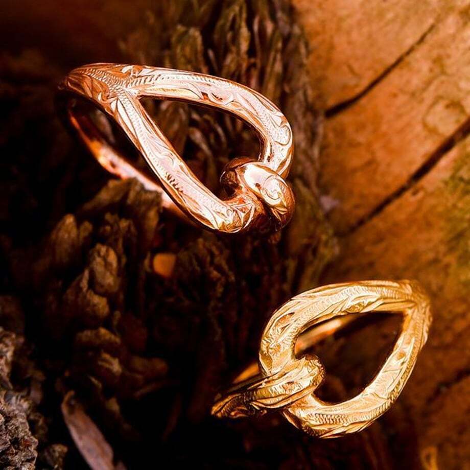 ハワイアンジュエリーデザインモチーフは「途切れることなく幾度も繰り返し打ち寄せる幸せの波」スクロール(波)の彫りが刻まれています。